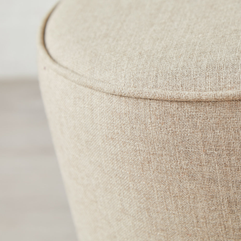We can make our drum and circular footstools with or without piping. Either works well and you may want to match the sofa or chair style. Please take advantage of our Free sample service to help you design your perfect drum or circular stool.