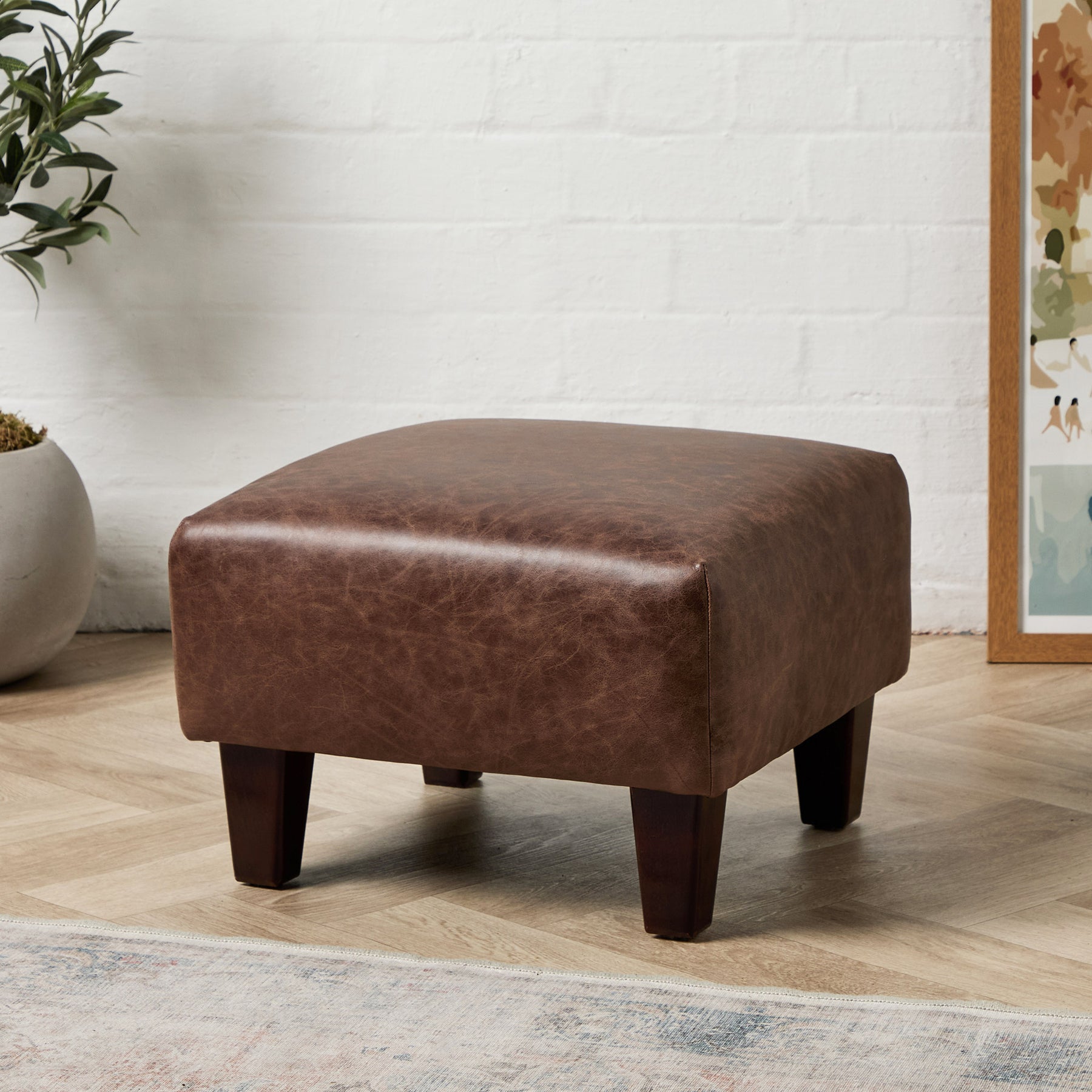 Edward Small Footstool (Selvaggio Dark Brown leather) 46 x 46cm