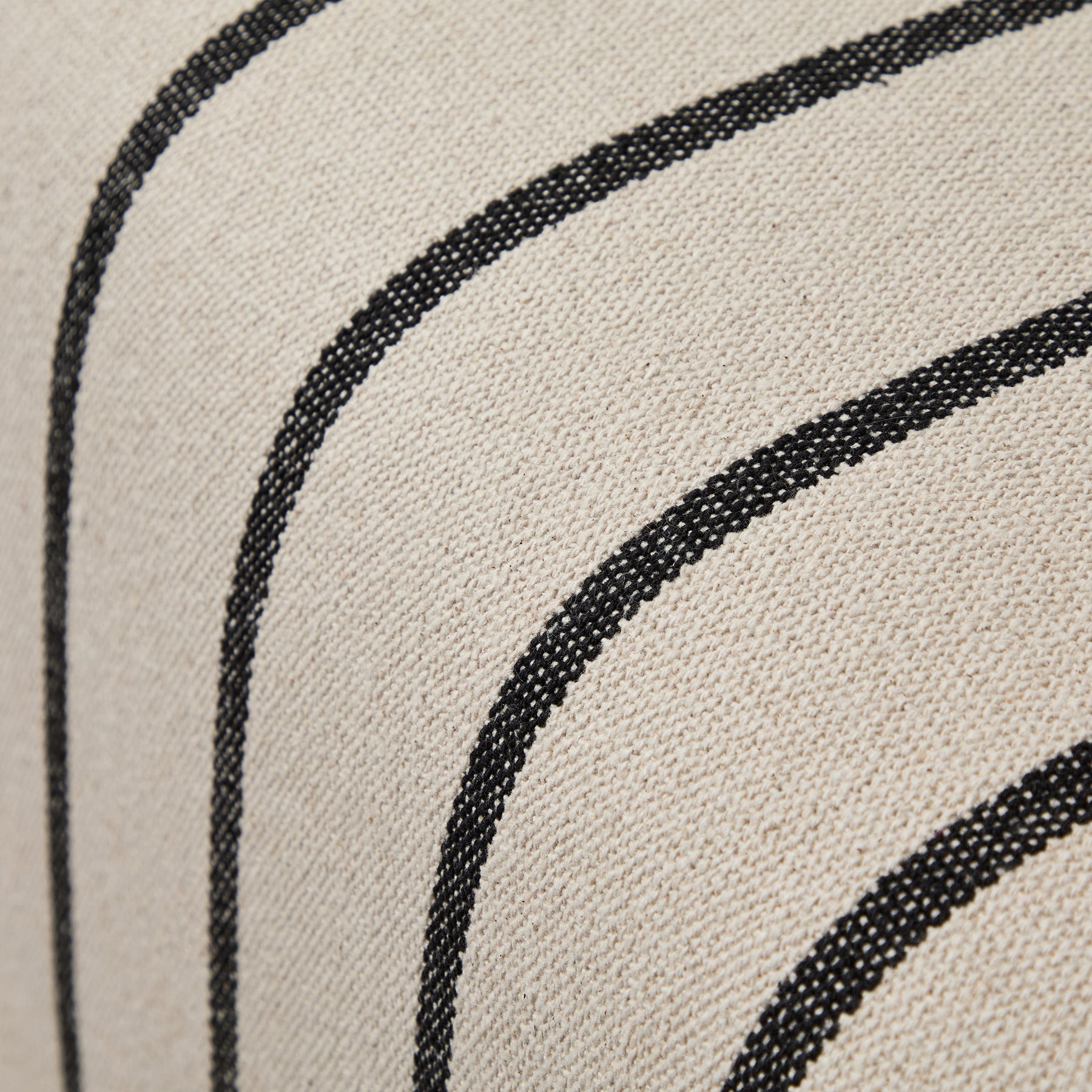 Size 120 x 46 x 49cm high. Fabric is Hopsack Black, with Bun Natural feet. These can be taken off if needed.