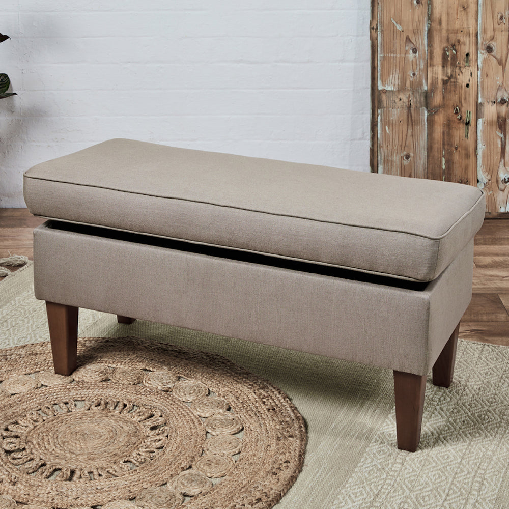 A beautiful footstool can also be practical. Our storage footstools and storage ottomans can be used for your books, dvd's, children's toys, photo albums, laptop, or even as a sewing or knitting box. All this 'stuff' needs to go somewhere and a lot of the time it's things we need everyday so we can't put it all in the loft or under the bed. There's no better feeling when the lid goes down and your room is nice and tidy again! Available in a range of our fabrics and leathers, whether it be a cream linen or a black leather, there are hundreds of choices and we are here to help. Our wooden frames are extremely strong so your storage footstool can be great for an extra seat when the family come over. They make great extra seating for parties, at the dinner table, in the lounge, conservatory or kitchen. The storage footstool can be used in any room, and is great for smaller homes or flats which don't have a lot of storage space. They are ideal in the bedroom to store your sheets or towels and can act as a handy seat or dressing table stool.